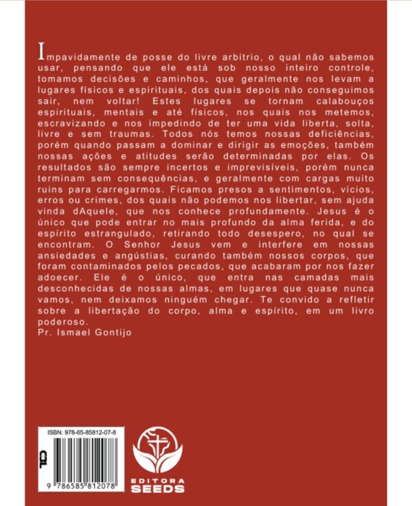 Impavidamente posse do livre arbítrio, o qual não sabemos usar. pensou que ele está sob nosso inteiro controle, tomamos decisões e caminhos que geralmente nos levam a lugares físicos e espirituais, dos quais depois não conseguimos sair, nem voltar! Estes lugares se tornam calabouços espirituais, mentais e ate físicos, nos quais nos metemos, escravizando e nos impedindo de ter uma vida libertadora. vivem e são traumas. Todos nos temos nossas deficiências, porém quando passam a dominar e dirigir as emoções, também nossas ações e atitudes serão determinadas por elas. Os resultados são sempre incertos e imprevisíveis, porém nunca terminam sem consequências, geralmente com cargas muito ruins para carregarmos. Ficamos presos a sentimentos, vícios, erros ou crimes, dos quais não podemos nos libertar, sem ajuda da força que nos concedeu profundidade de alma ferida. espírito estragado, retardo todo desespero, no qual nos encontramos. O Senhor Jesus vem intervir em nossas ansiedades, curando também nossos corpos, que foram contaminados pelos pecados, que acabaram por nos fazer adoecer. Ele é o único que entra nas camadas mais desconhecidas de nossas almas, em lugares que quase nunca vamos, nem deixamos ninguém chegar. Te convido a refletir sobre a libertação do corpo, alma e espírito, em um livro poderoso Pr. Ismael Gontijo
